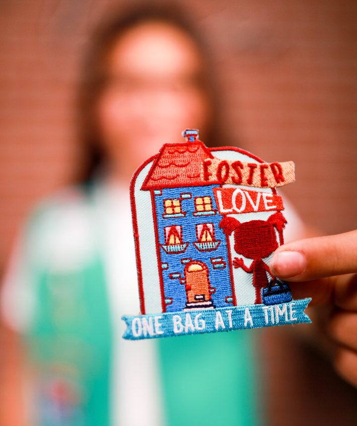 The Foster Love™ - One Bag at a Time Girl Scout Patch is designed to empower girls and promote compassion, courage, confidence, character. The patch was created in partnership with Together We Rise and helps fund their efforts to support children in foster care. By earning this patch, girls learn about the importance of being compassionate and helping others, both locally and globally.