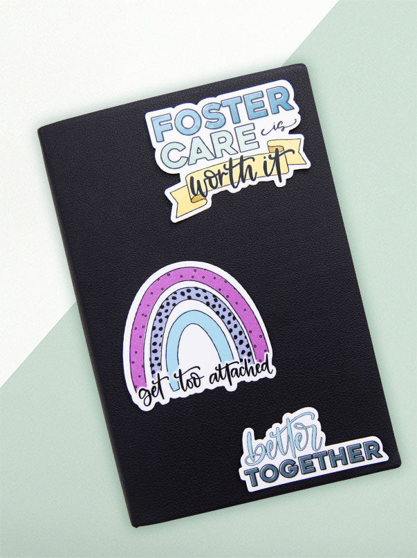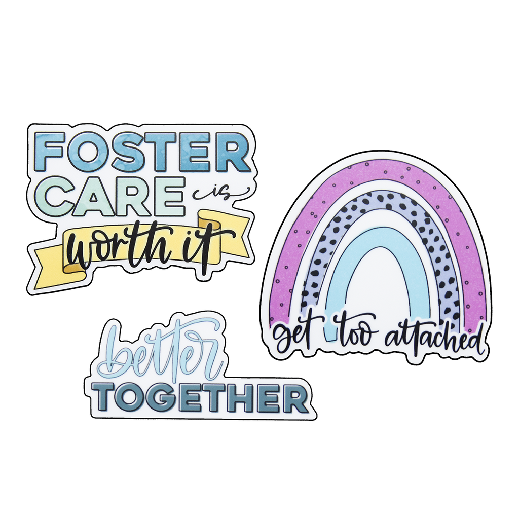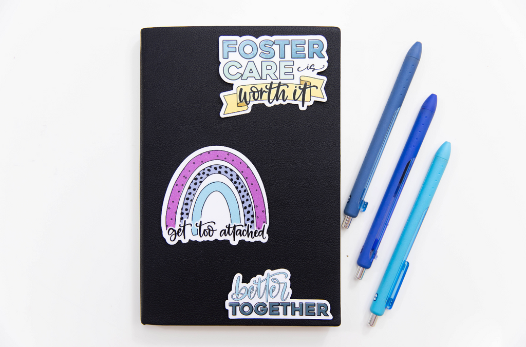 Show your support for foster youth and their families with this great sticker pack. They will look lovely on a notebook, laptop, water bottle, or anywhere you'd like to stick it!
