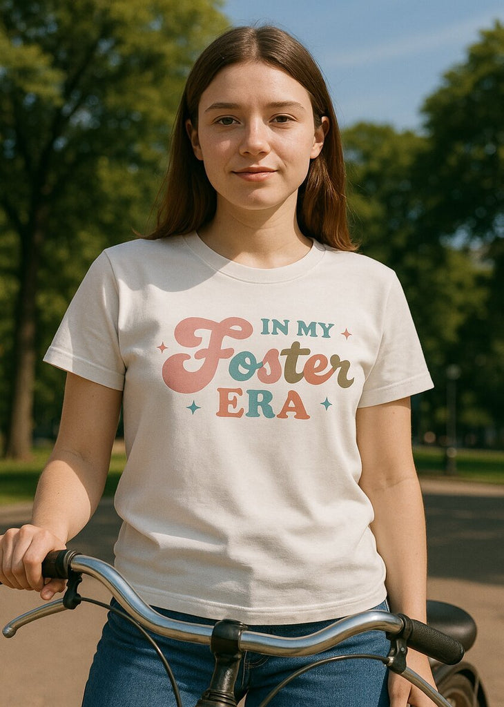 Stay on trend with your style and your values in a shirt that says it all — you're IN your foster era! Because supporting foster youth isn't just a moment, it's a movement.