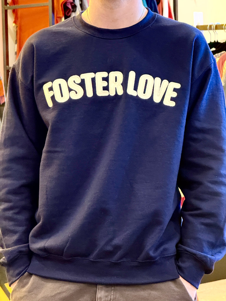 Show your support for foster youth in style with the Foster Love Patchwork Crewneck—now in navy blue! A cozy and meaningful statement piece. This high-quality navy sweatshirt features "Foster Love" stitched across the chest in a unique patchwork design.